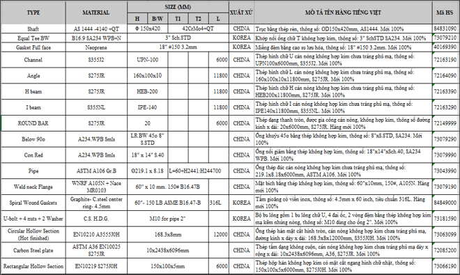 HS codes of goods updated over 15 years of professional experience